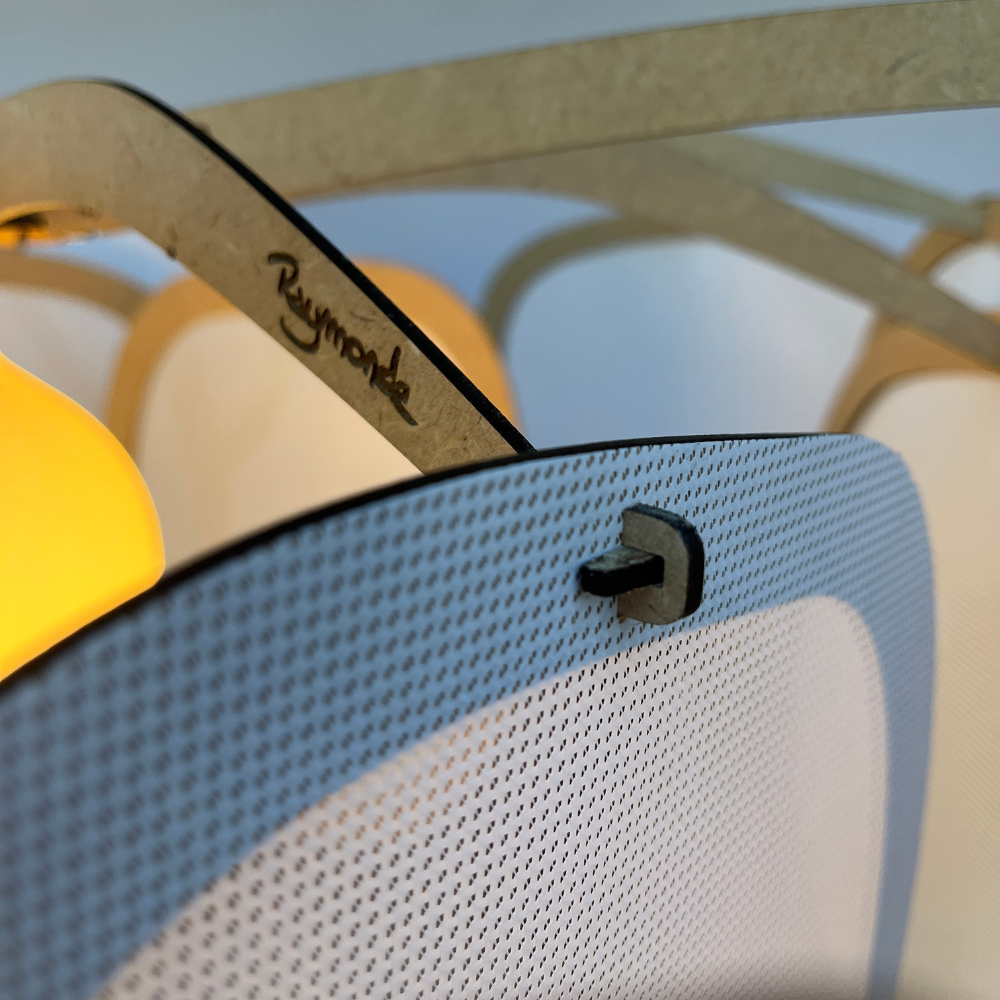 - Structure de l’abat-jour : MDF de portes en bois revalorisé